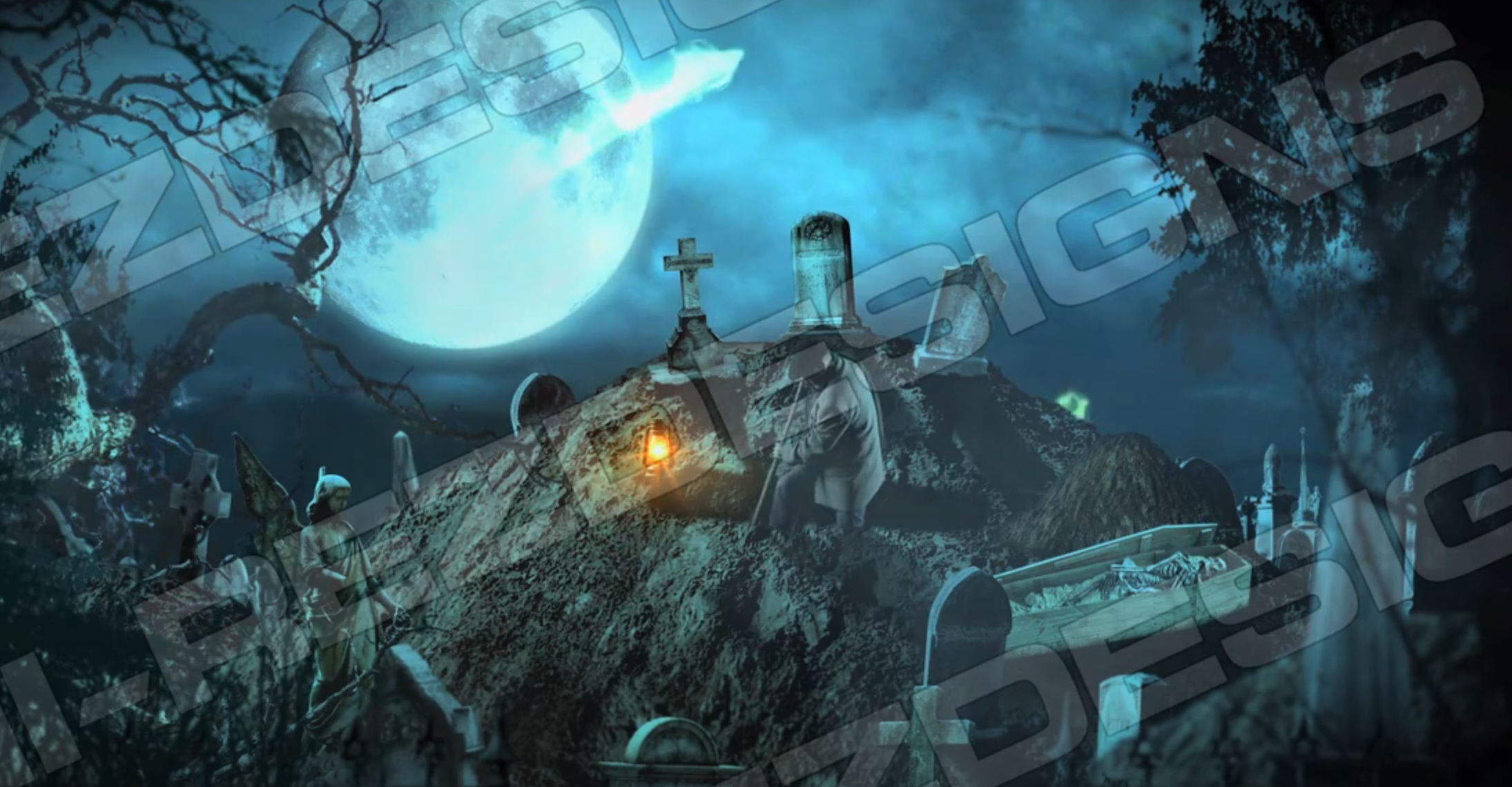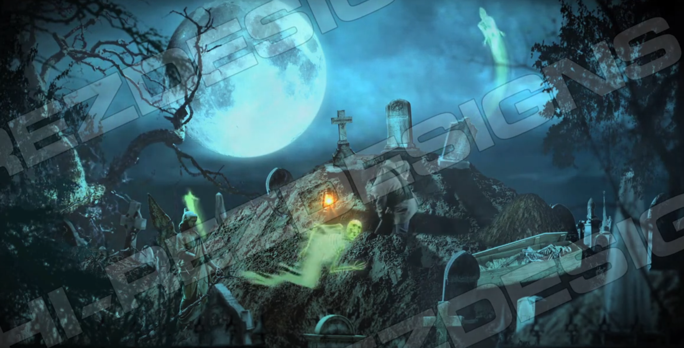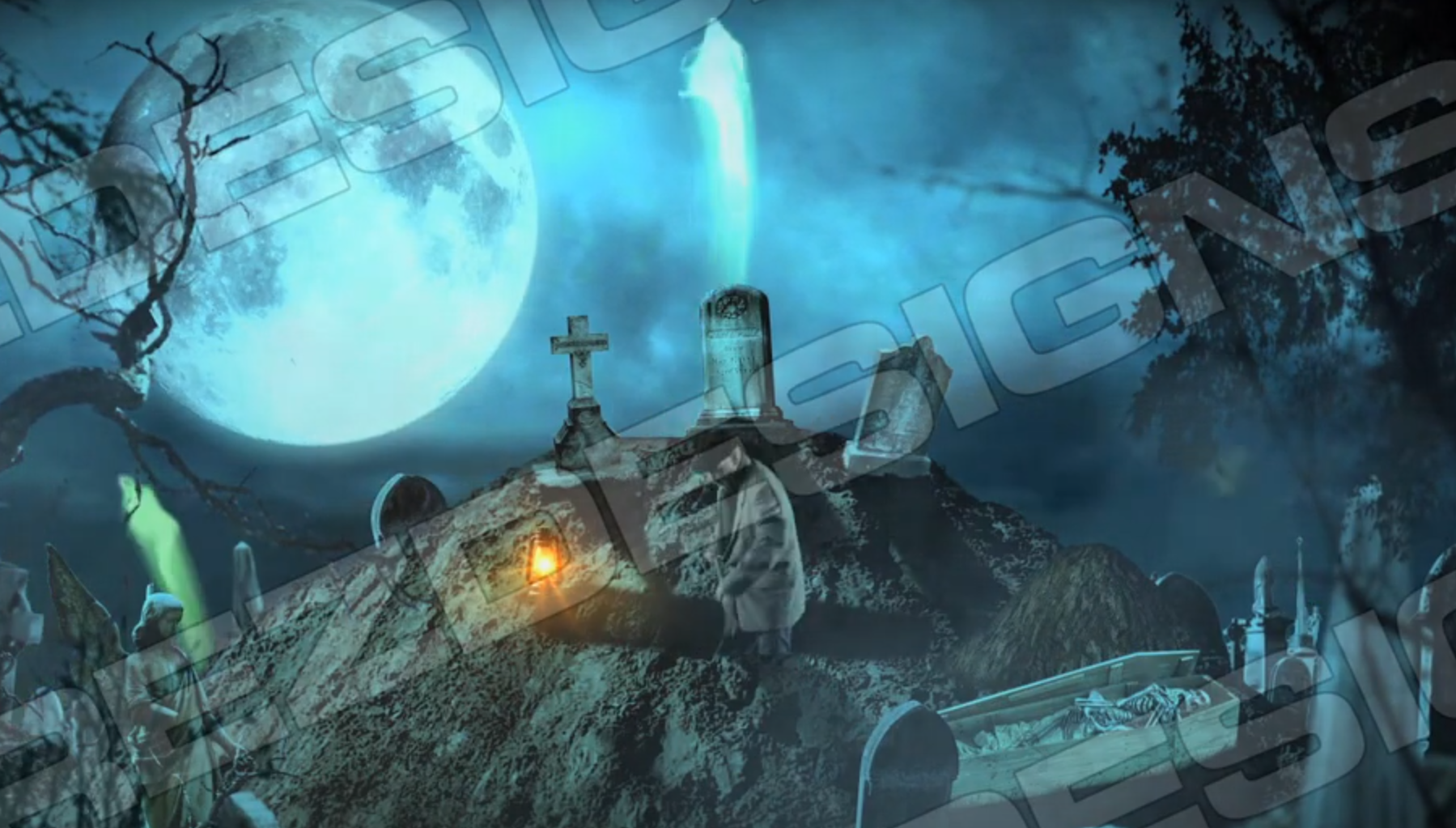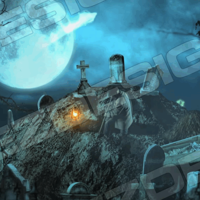 Choose the version that works best for your scene: a purely atmospheric digger, or a spectral display that includes floating spirits rising and swooping through the night.