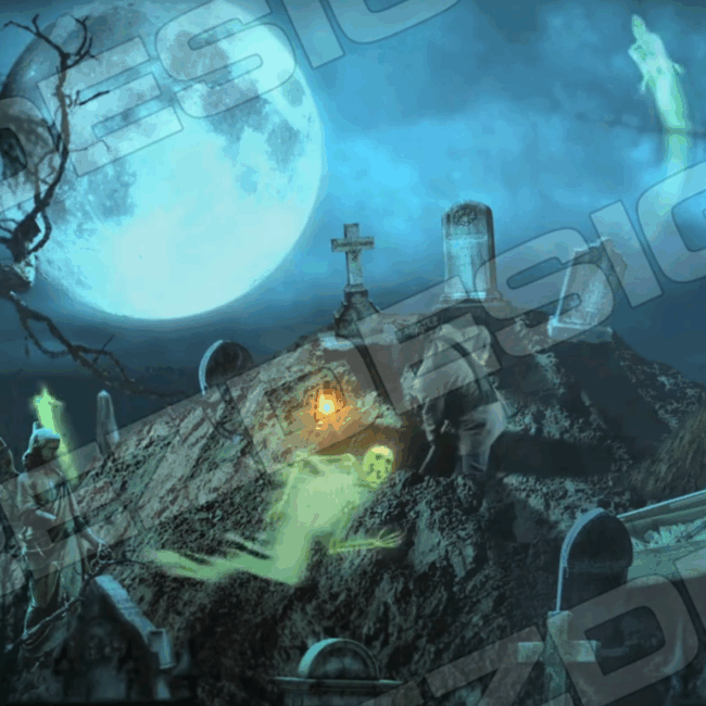 - Back Wall Projection: Add the grave digger to the rear of your cemetery scene for depth and a realistic layer of movement behind tombstones.